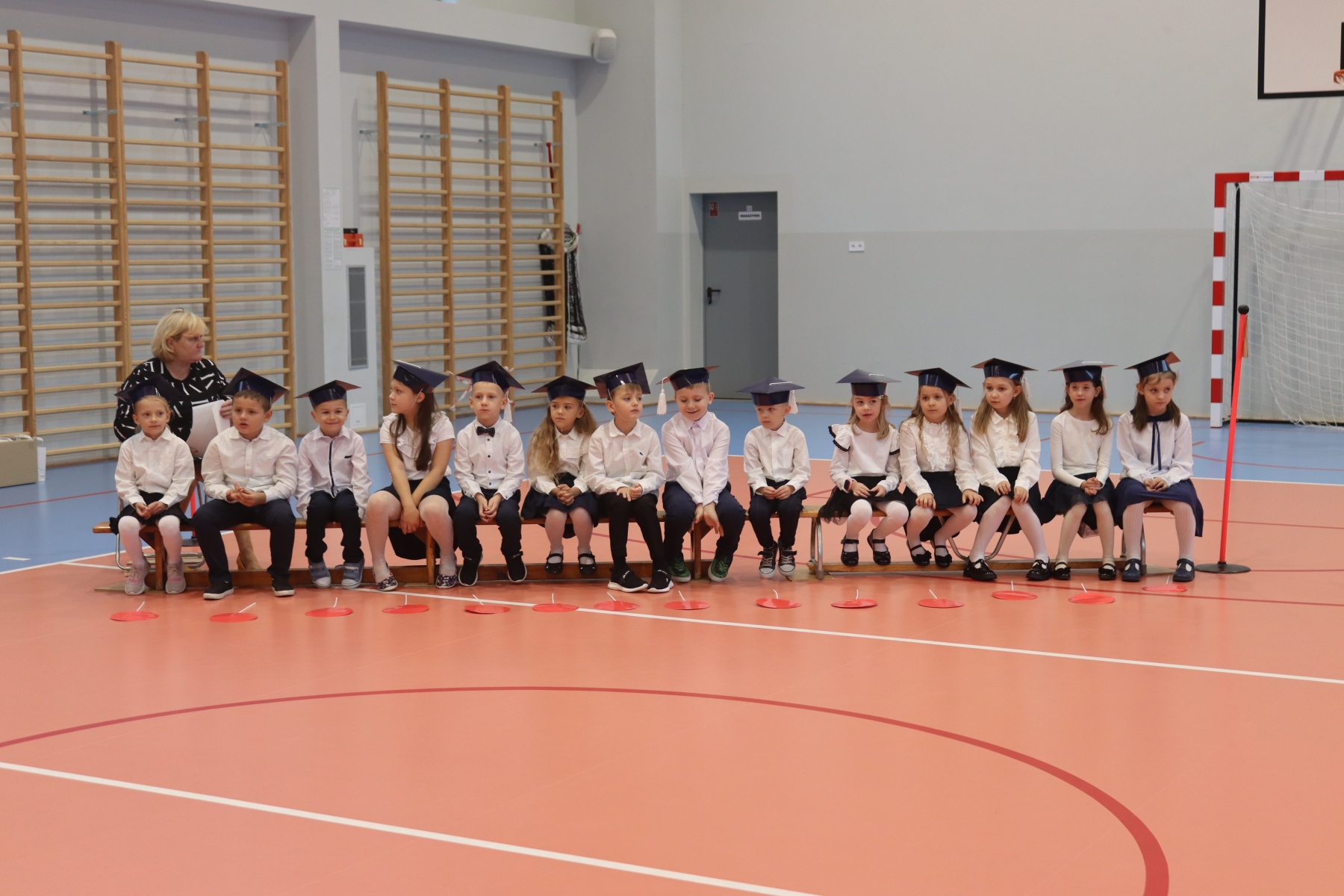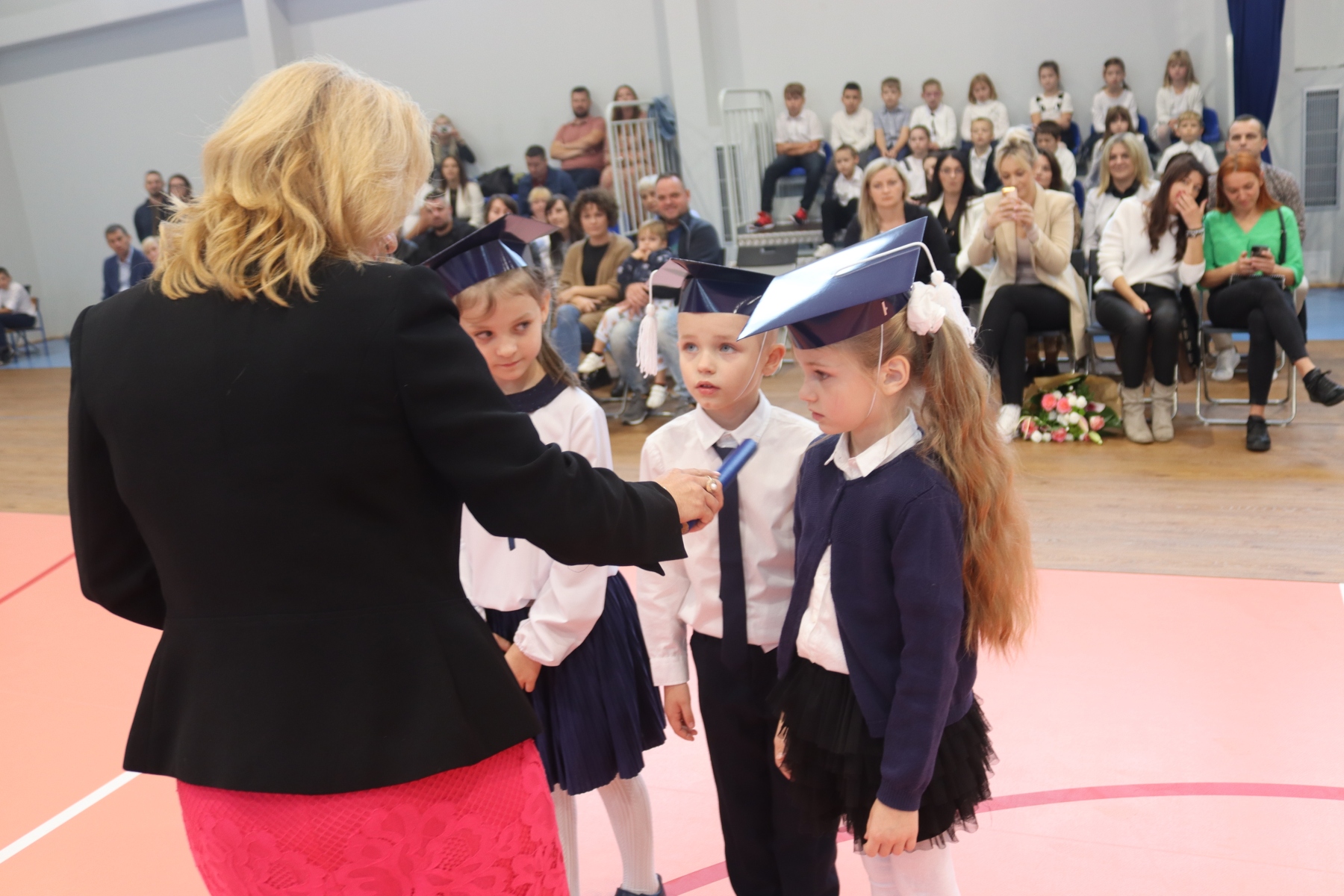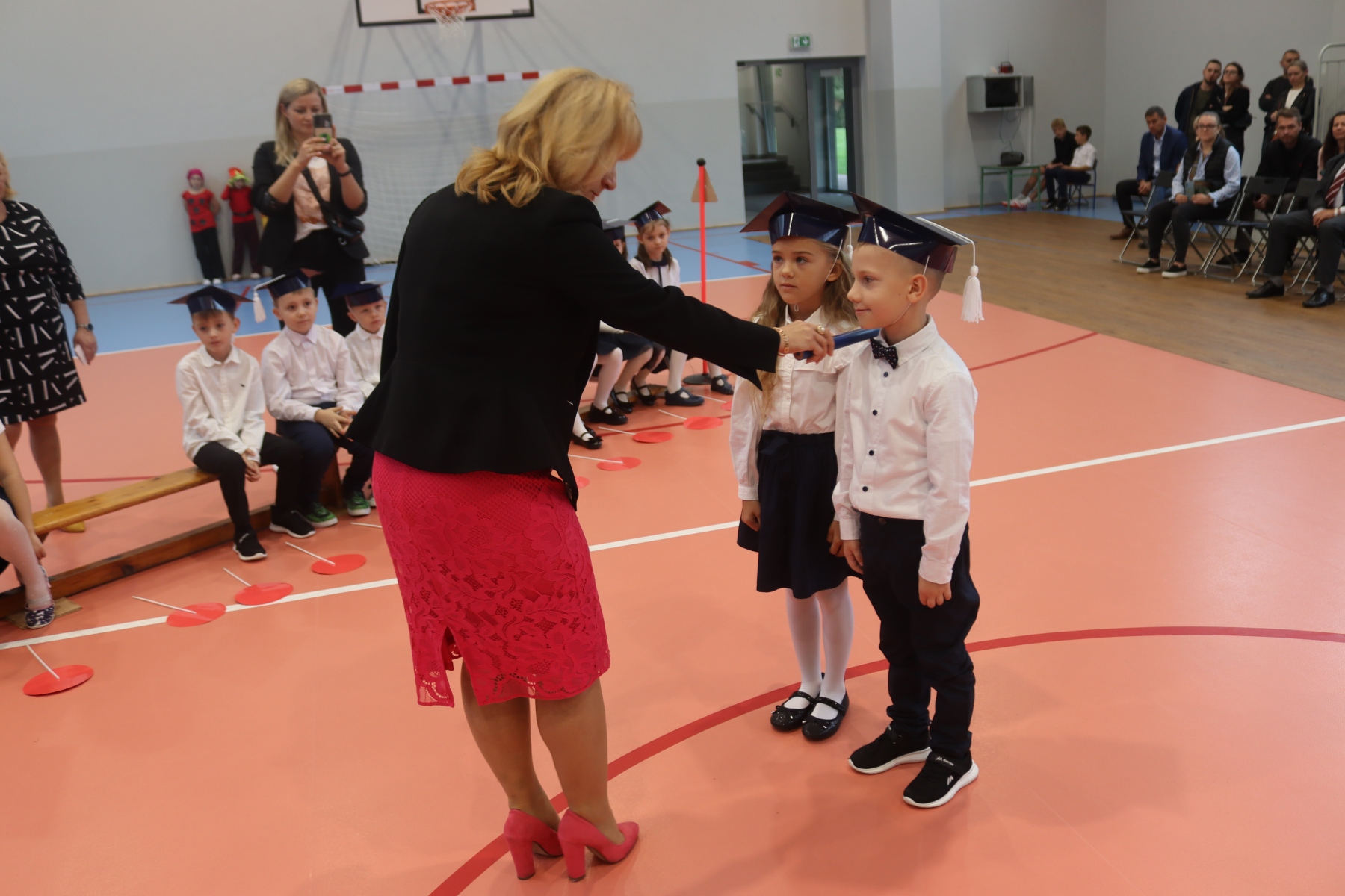 Po ślubowaniu pani dyrektor Anastazja Koczur pasowała każde dziecko na ucznia. Na zakończenie dzieci dostały upominki i słodki poczęstunek.
