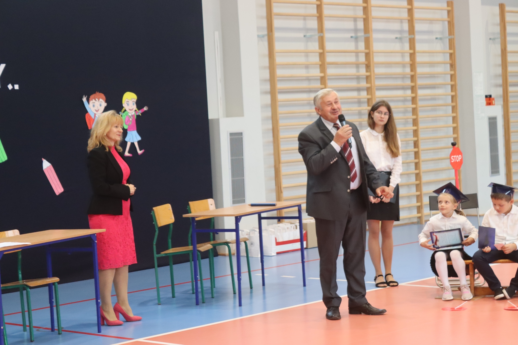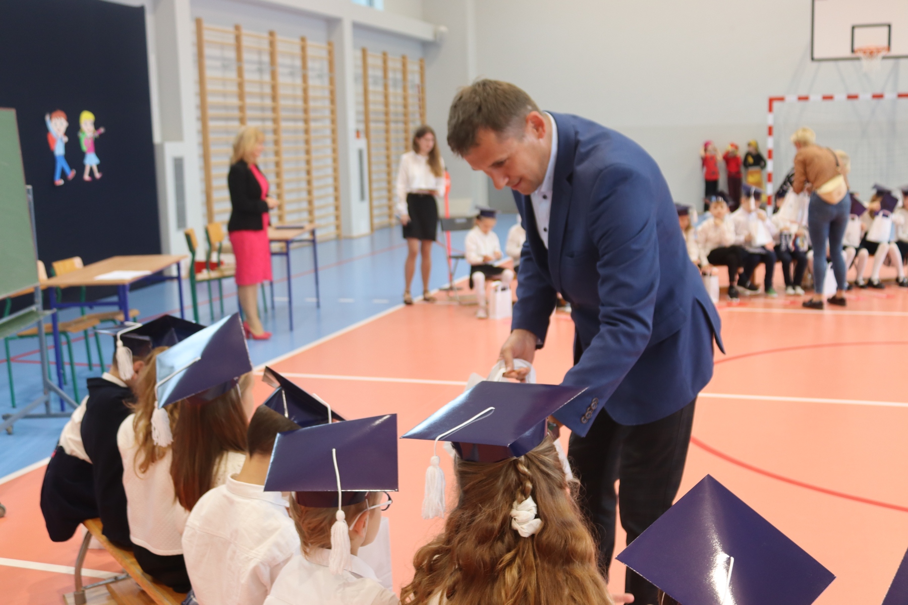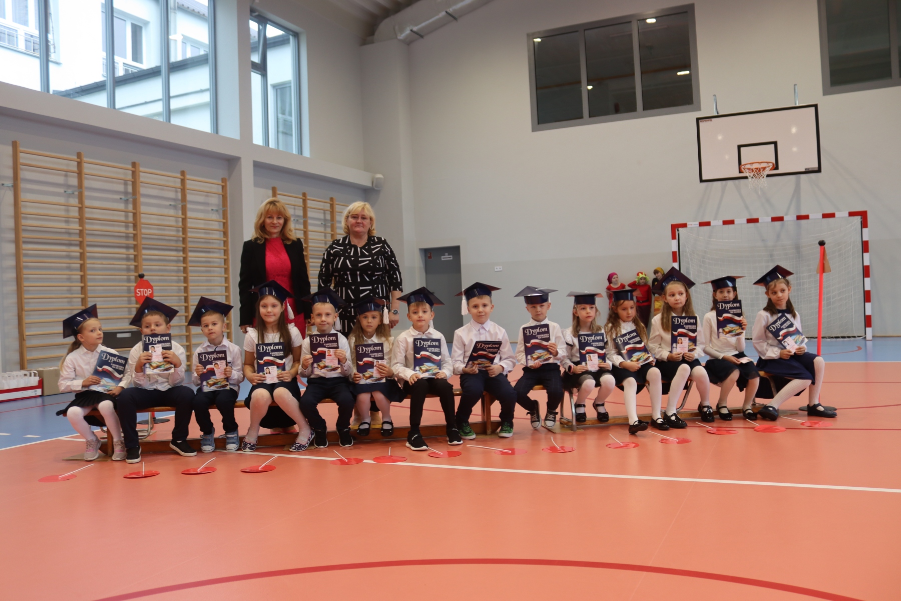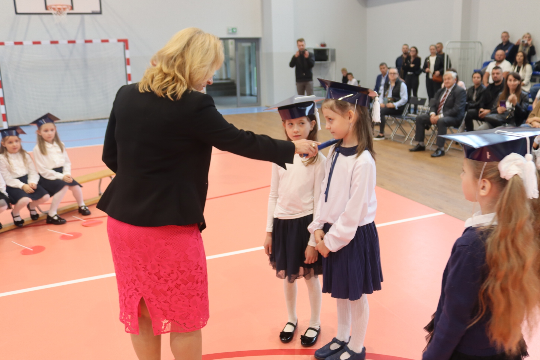 Po ślubowaniu pani dyrektor Anastazja Koczur pasowała każde dziecko na ucznia. Na zakończenie dzieci dostały upominki i słodki poczęstunek.